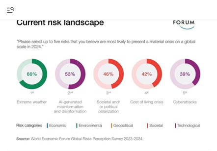 [2] Informe de Riesgos Globales. World Economic Forum. Enero, 2024. Por supuesto existen otras instituciones mundiales que han emitido opiniones similares pero, en general hay bastante coincidencia entre ellas.